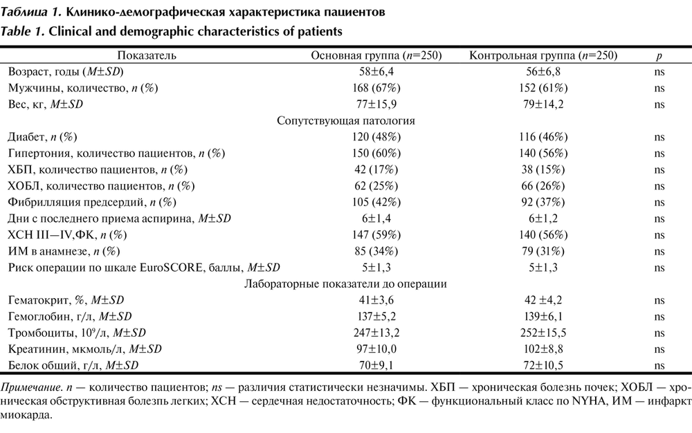 Критериями включения являлись неосложненная форма ИБС, плановая первичная операция АКШ в условиях ИК.