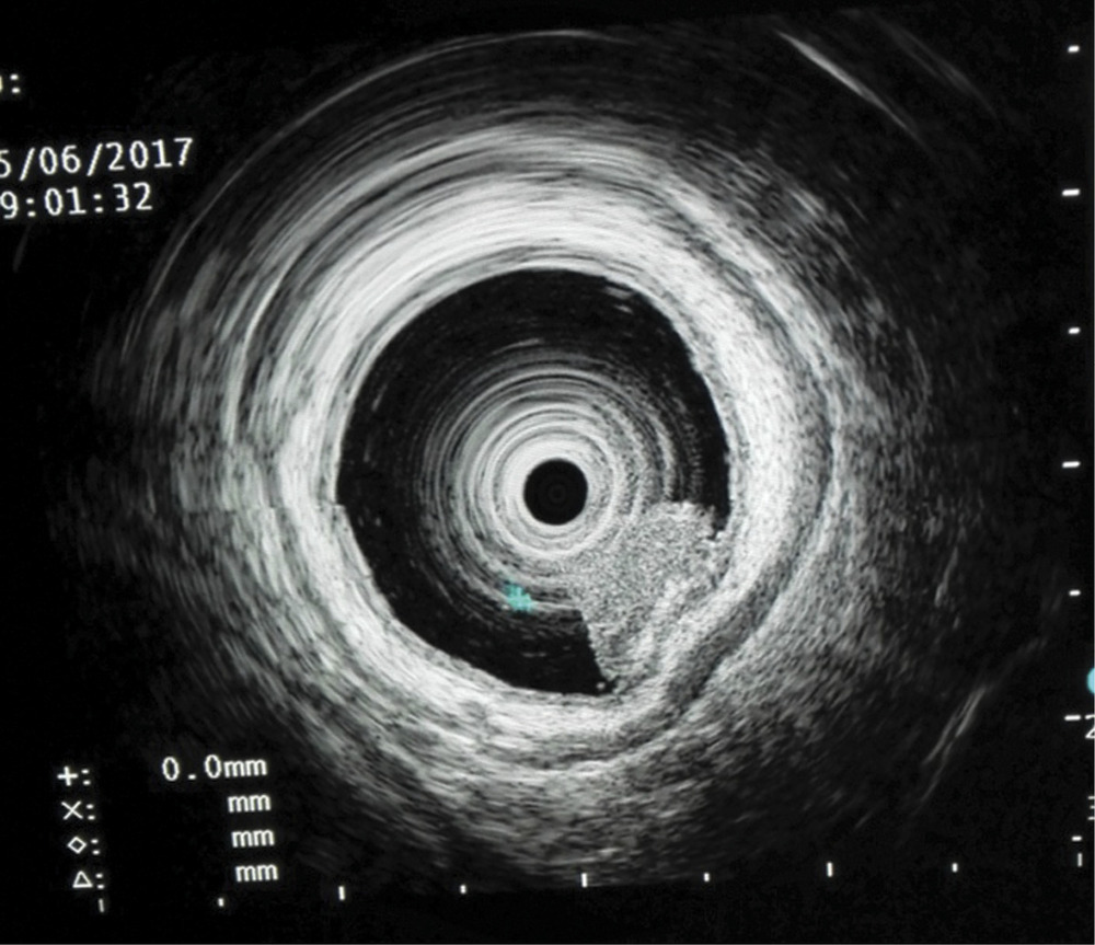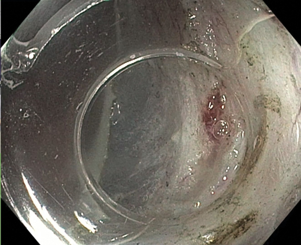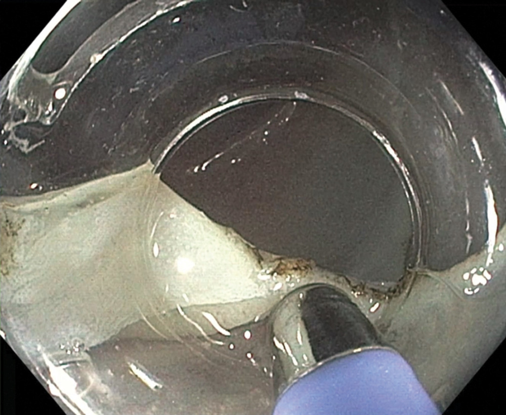 Следующий этап — лечебный. Была выполнена эндоскопическая резекция слизистой оболочки с опухолью с диссекцией в подслизистом слое ESD (рис. 8, 9,
